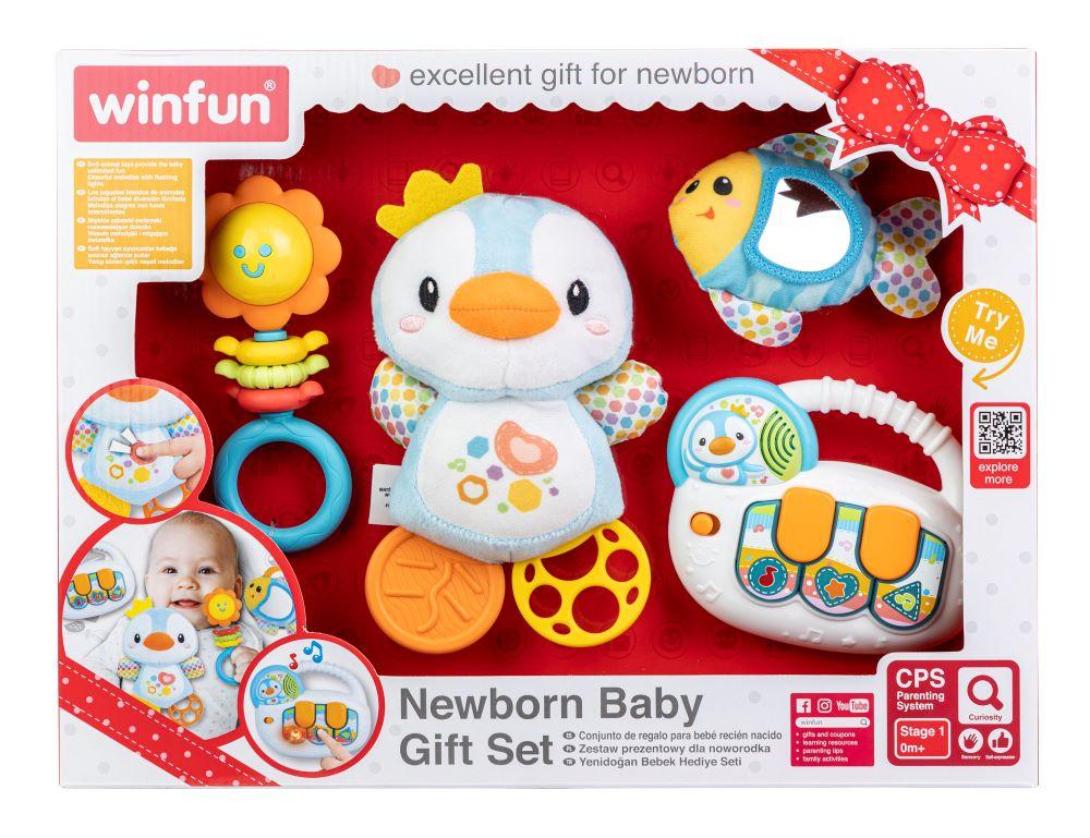 Набір іграшок 3036-NL (6шт) 4шт,брязкальце, пінгвін-гризунок,пискавк,плюш,піаніно-муз,світло, рибка-підвіска,дзеркало,на бат-ці, в